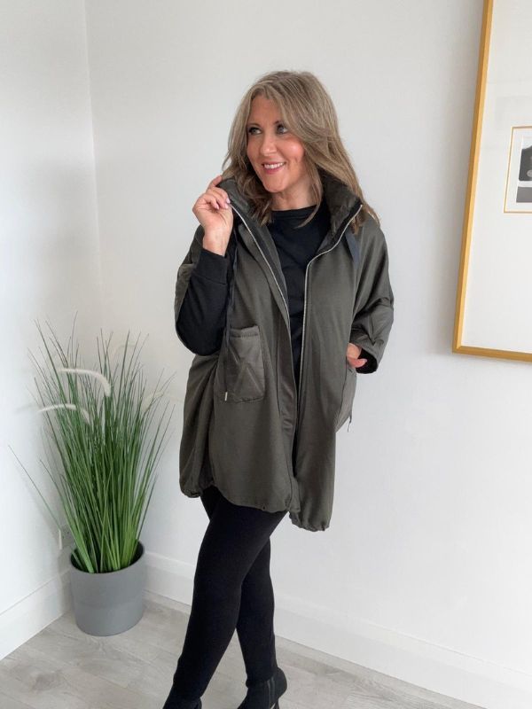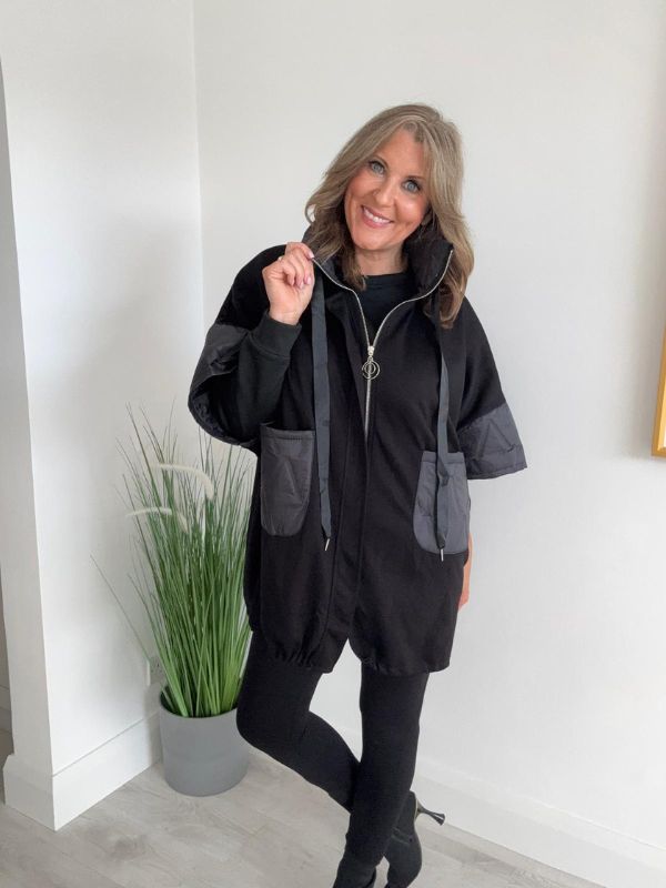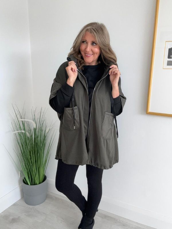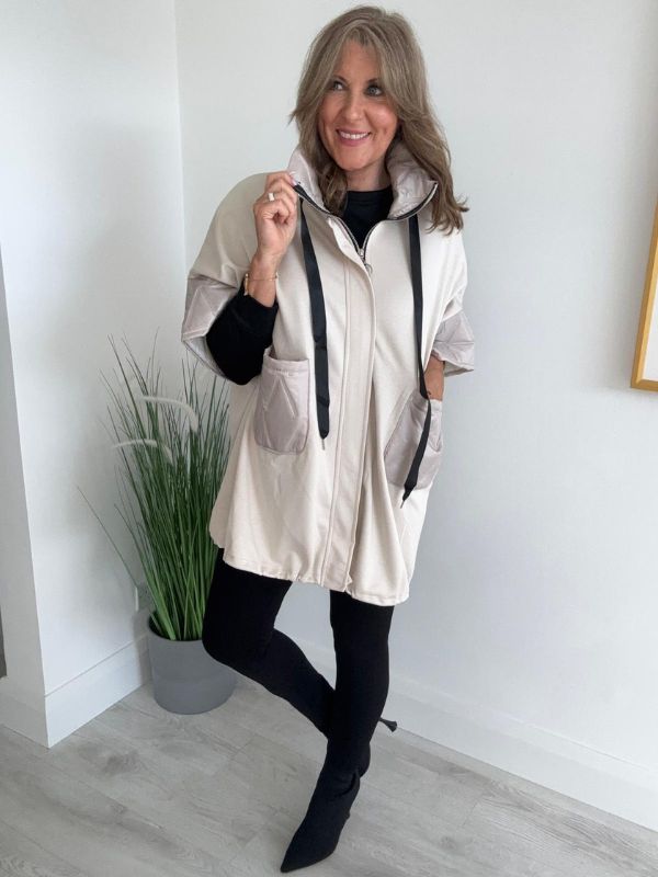 Stay effortlessly stylish and cozy in our Oversized Zip Cape Jacket. Designed for comfort and versatility, this chic piece features contrast pocket details, an adjustable drawstring hem, and a high collar for a modern finish. Perfect for layering over your favourite knit or long-sleeve top, it’s a wardrobe essential that combines fashion and function.