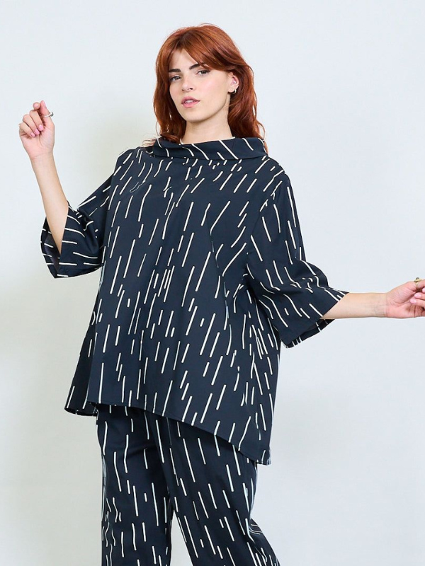 Oversized Dash Print Cowl-Neck Blouse – Free Size 8–20