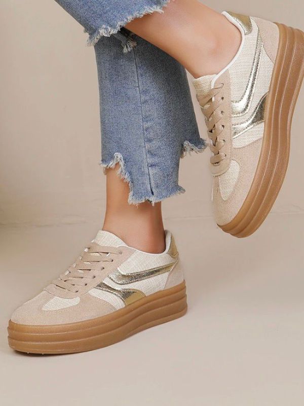 Whether you’re going for a sporty vibe or an urban street look, these chunky platform sneakers deliver standout style with everyday versatility.