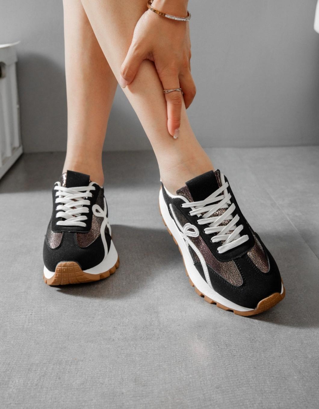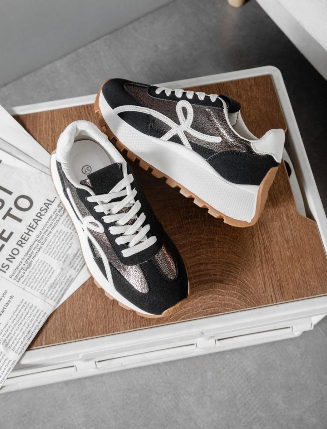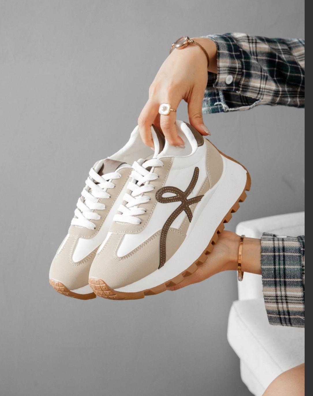 Key Features: • Stylish Color Options: • Beige & White with Brown Accents • Black with Metallic Bronze and White Details • Chunky Platform Sole: Adds height and modern appeal without sacrificing comfort • Durable Outsole: Textured rubber grip for added traction • Unique Side Design: Decorative side “lace” design for a playful retro look • Breathable Interior: Keeps your feet cool and supported throughout the day • Lace-up Closure: Secure and adjustable fit