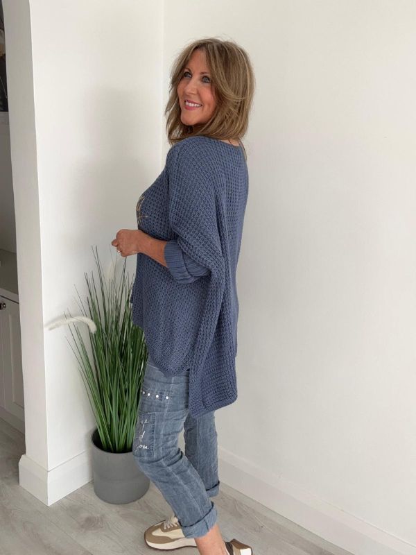 With its free size fit (UK 10–20), this jumper drapes beautifully on all body shapes. Pair it with jeans, joggers, or leggings for a chic casual look.
