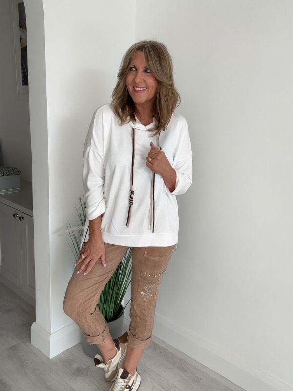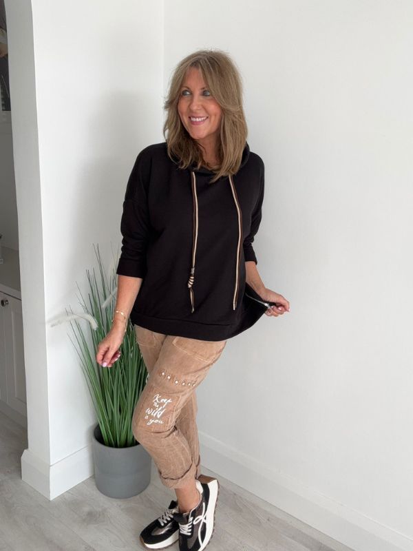 Stay effortlessly stylish and comfortable with our women’s casual hooded top, designed in a relaxed fit with chic long drawstrings. Made from soft, breathable fabric, this versatile hoodie is perfect for layering or wearing on its own. The flattering free size (fits UK 10–18) makes it a wardrobe staple for every shape. Pair it with jeans, joggers, or casual trousers for an easy everyday look.