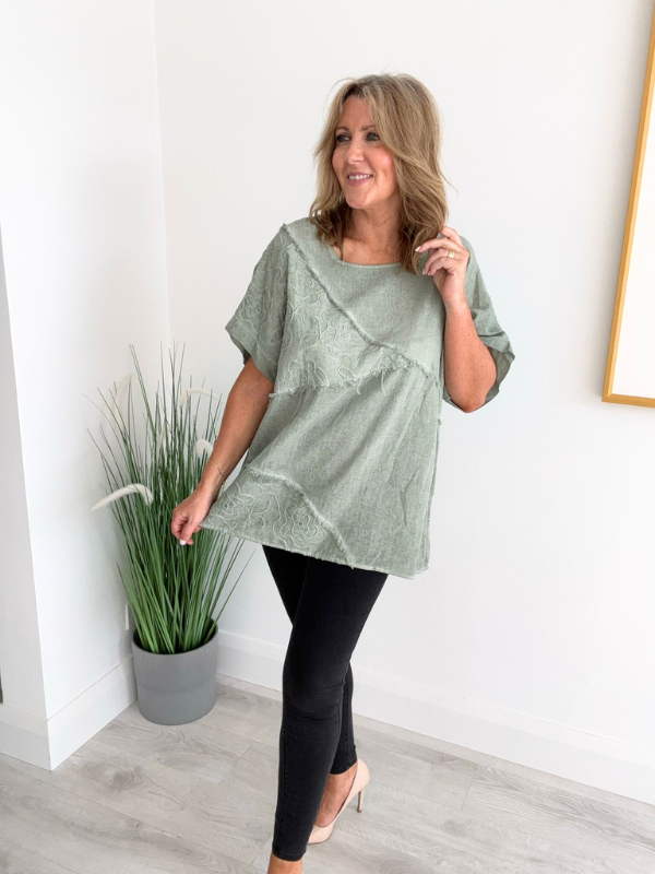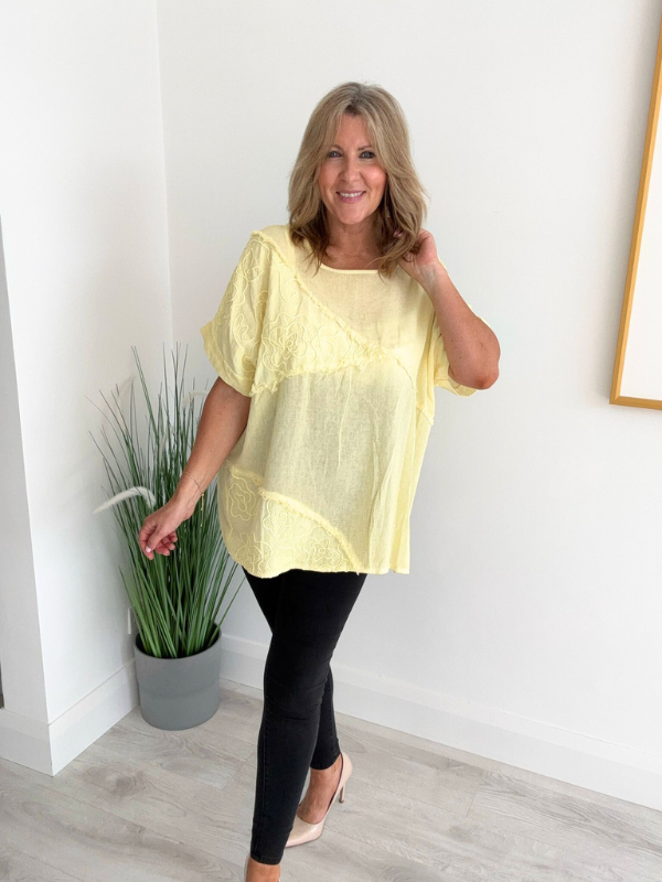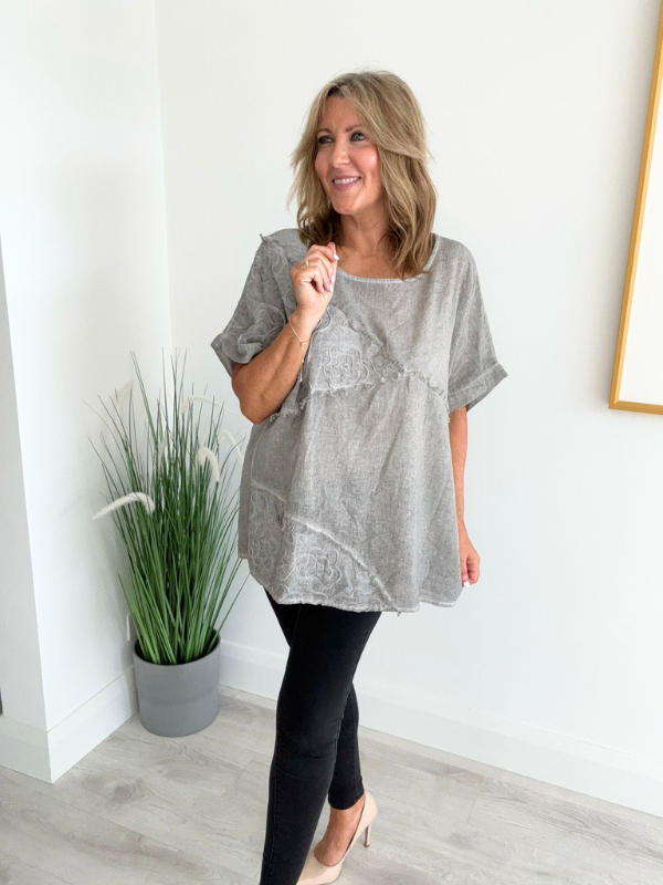 Brushed Cotton Linen Embroidered Top – Relaxed Fit Tee (Free Size 8-18)