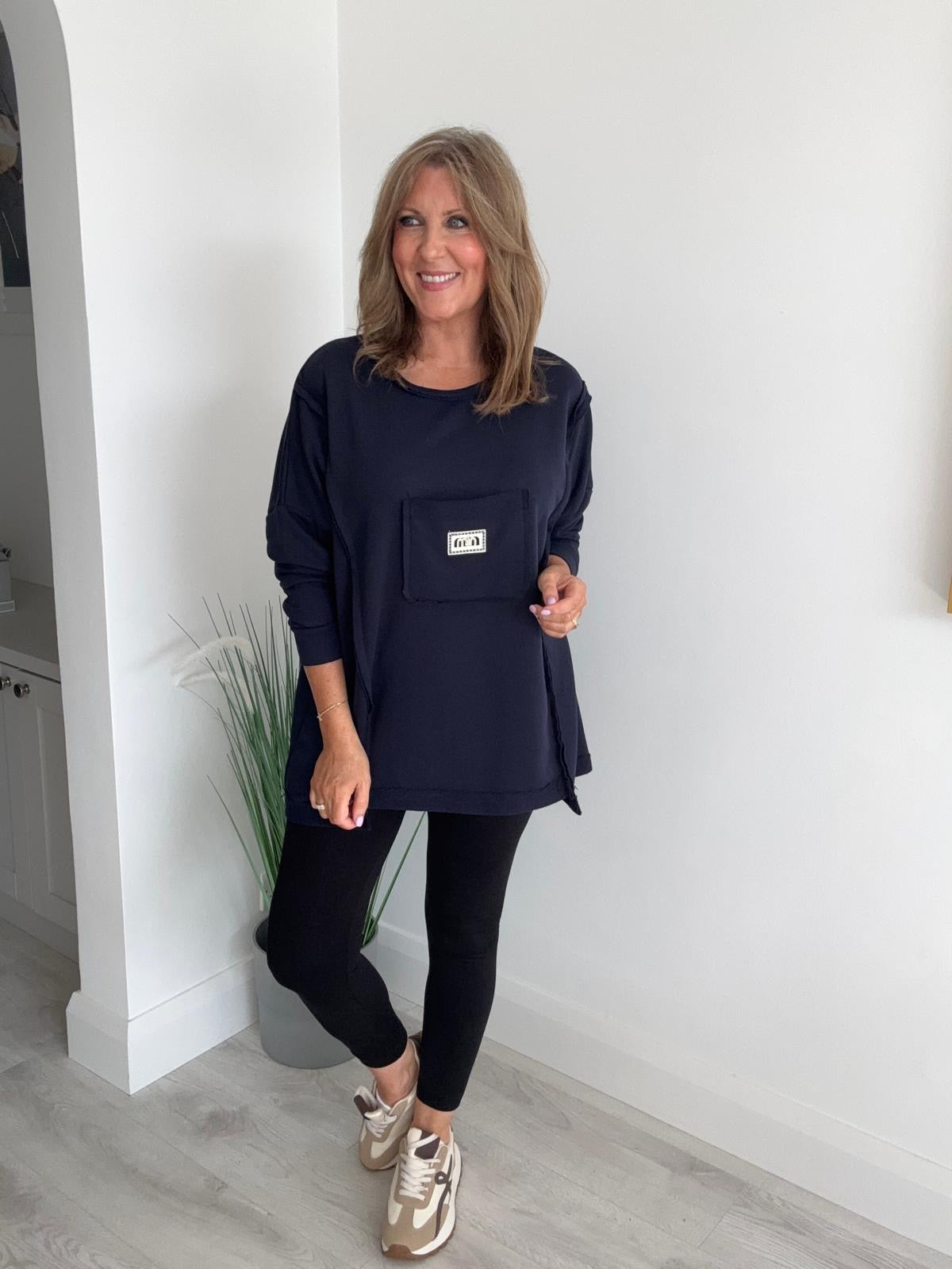 Stay effortlessly stylish and comfortable with our oversized pocket jumper top, perfect for everyday wear. Designed in a relaxed fit, this jumper suits sizes 10-18, making it a versatile wardrobe essential. Pair it with leggings, jeans, or boots for a chic casual look.
